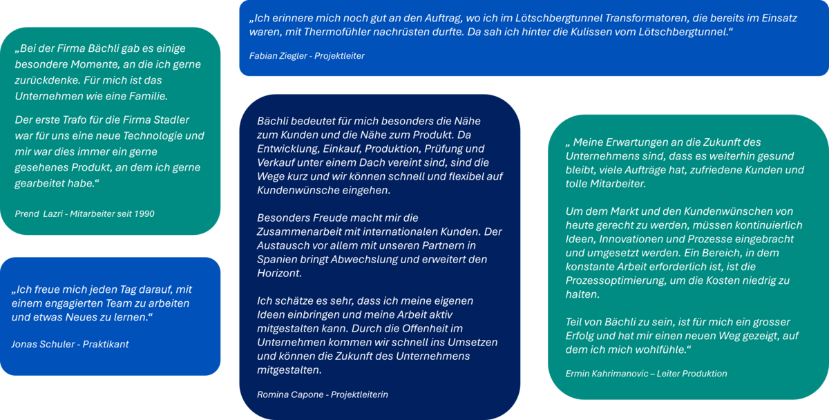 Mit grossem Know-how, Innovationsgeist und kompromisslosem Qualitätsanspruch entwickelt und produziert Bächli Transformatoren, Drosseln und elektrotechnische Lösungen für anspruchsvollste Anwendungen - von der Bahn über Industrie und Energie bis hin zu Medizintechnik und Forschung. Rund 40 engagierte Mitarbeitende vereinen Vertrieb, Entwicklung und Produktion unter einem Dach und garantieren so Schweizer Qualität, Flexibilität und Verlässlichkeit.