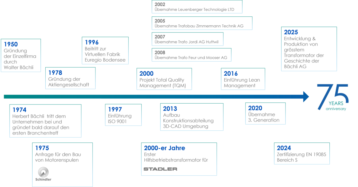 Seit der Gründung im Jahr 1950 hat die Bächli AG die Branche mitgeprägt. Die wichtigsten Meilensteine dieser Entwicklung nachfolgend im Überblick:
