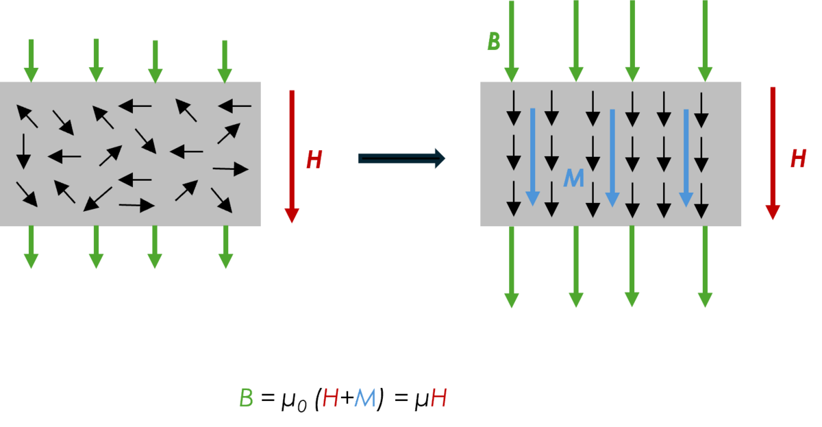 The additional magnetic field resulting from the alignment of the elementary magnets in the core is called magnetization or M field. Expressed in formulas, the following applies: